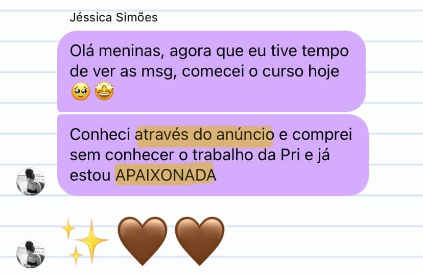 Veja depoimentos e resultados que as alunas compartilham dentro do curso VIP no Instagram