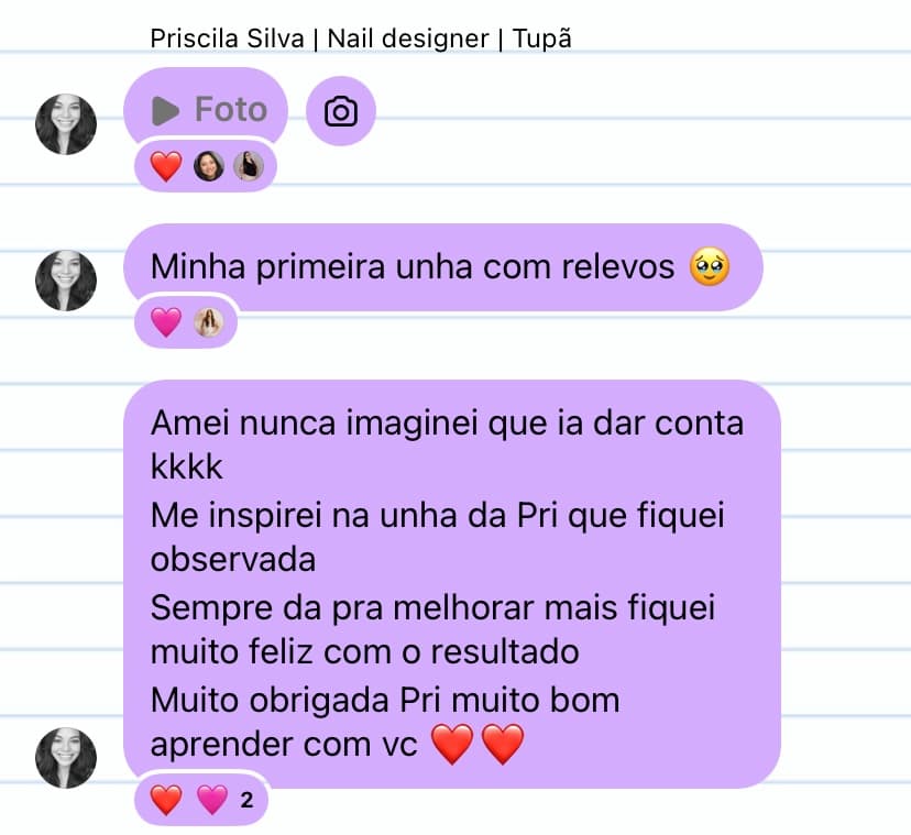 Conduzido pela especialista Priscila Junqueira, o curso Nail Art Gringa é uma imersão completa nas técnicas mais modernas, criativas e desejadas do universo da Nail Art. Já são mais de 400 alunas que transformaram suas carreiras e elevaram o nível dos seus atendimentos.